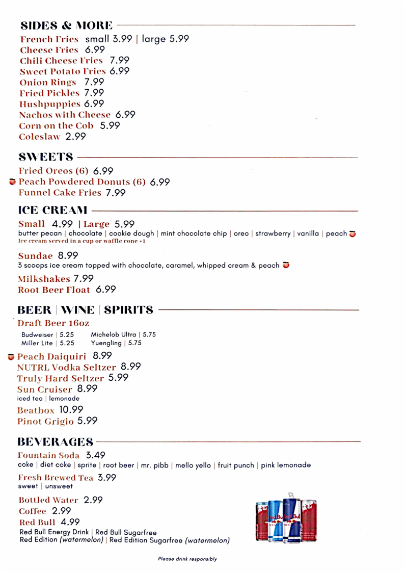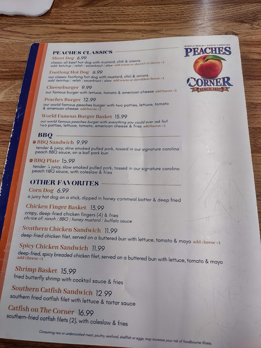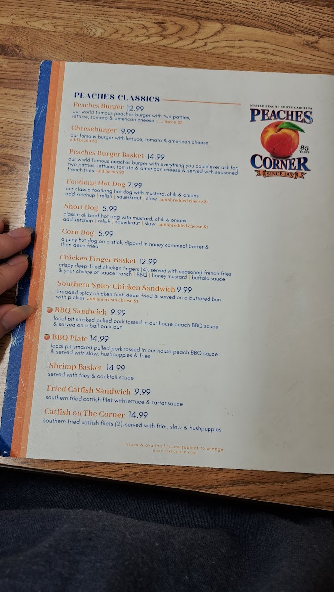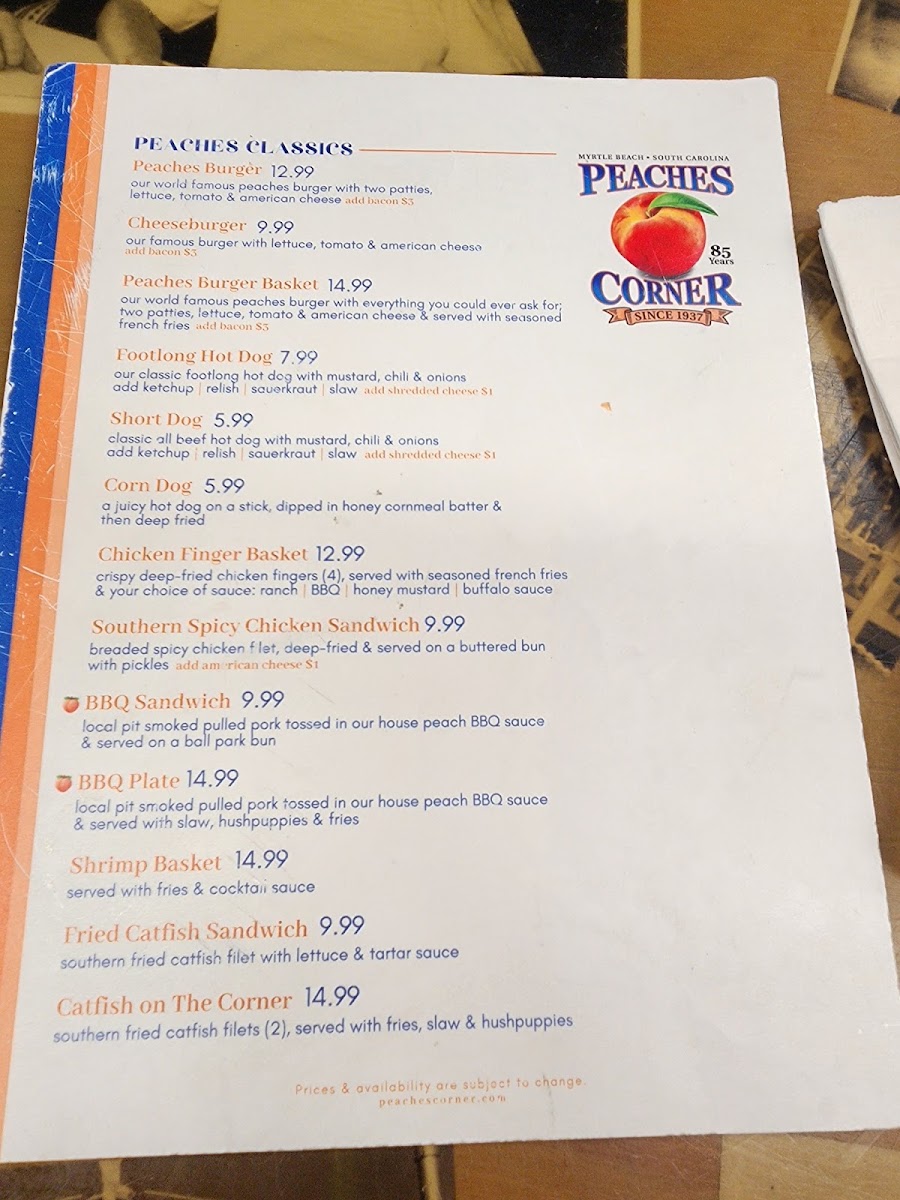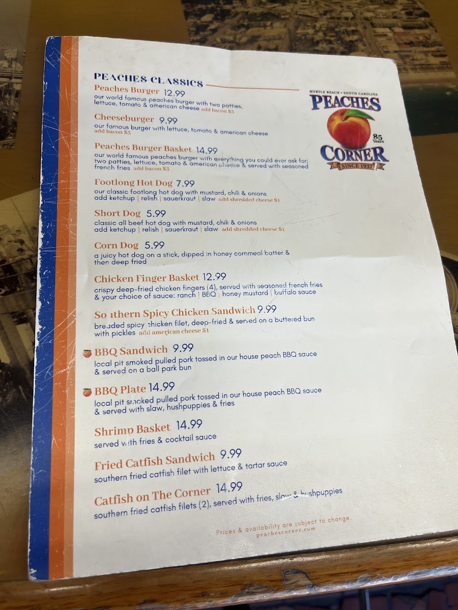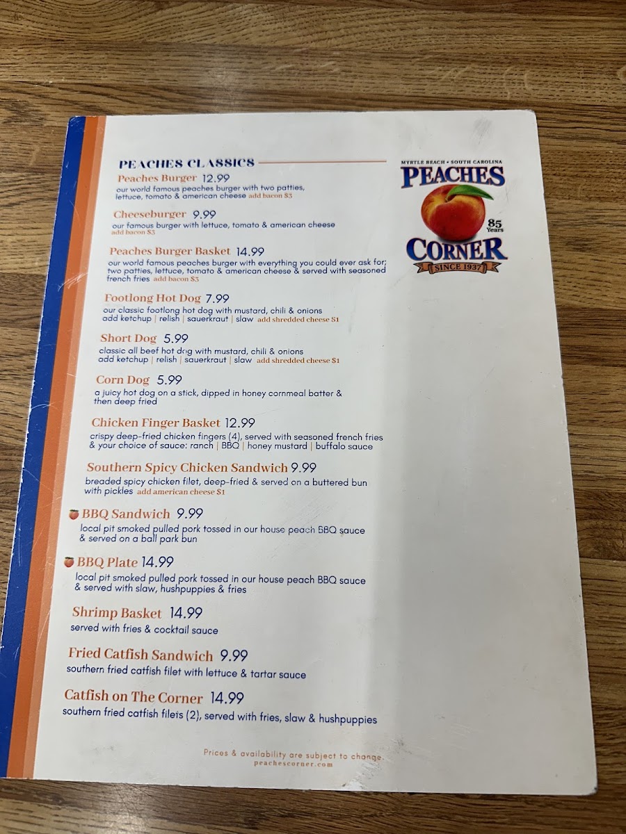Peaches Corner Menu
